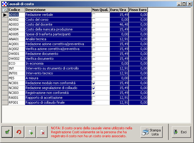 Causali di costo