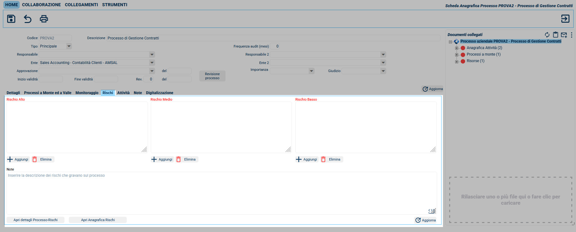 QW-2025-SchedaAnagraficaDelProcesso-Rischi Published 29 August 2025 at 1849 × 747 in QW-2025-SchedaAnagraficaDelProcesso-Rischi Previous Next Schermata della sezione Rischi, con esempi di rischi classificati per livello di importanza. Schermata della sezione Rischi, con esempi di rischi classificati per livello di importanza.