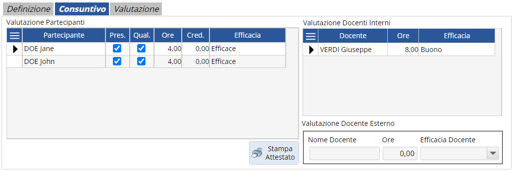 Consuntivo Addestramento