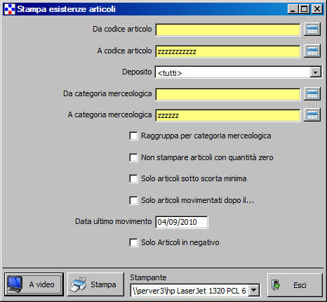2. STAMPA ESISTENZE ARTICOLI PER DEPOSITO